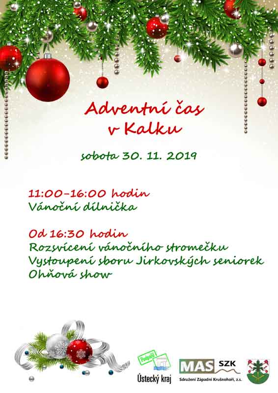 Adventní čas v Kalku bude zahájen 30.listopadu 2019 vánoční dílničkou a rozsvícením stromečku.