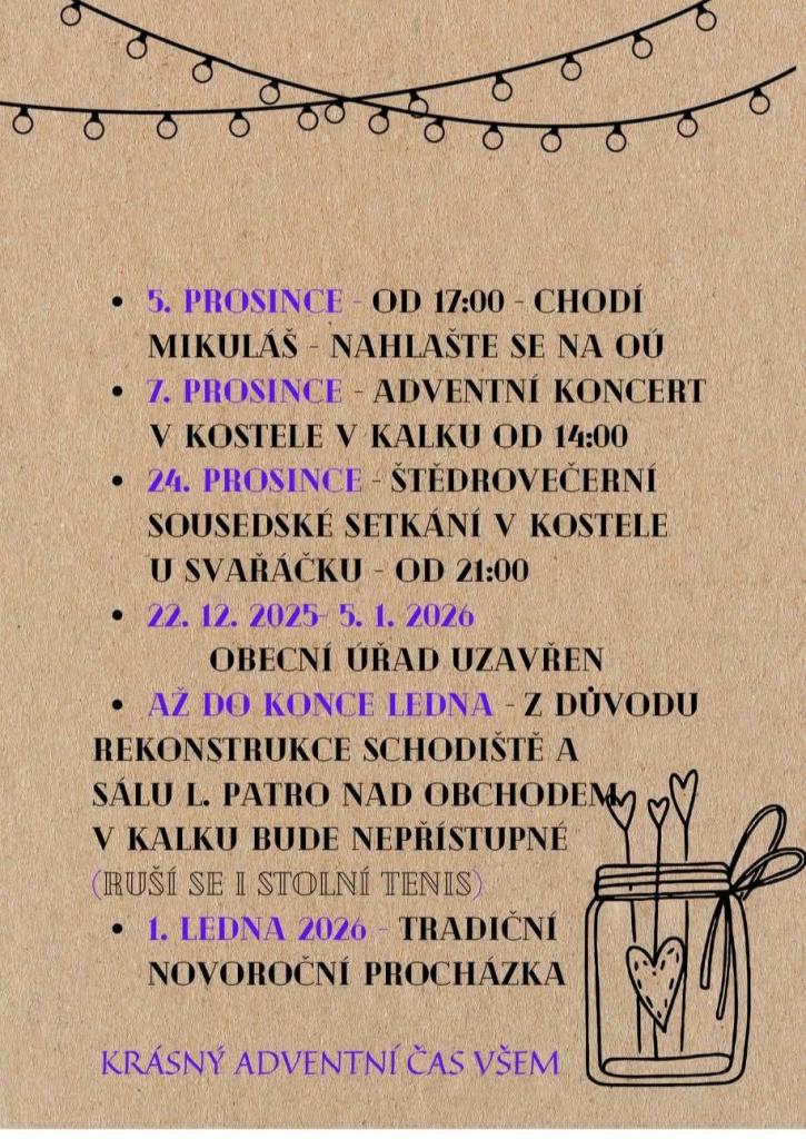 Obec Kalek přeje všem občanům klidný a krásný předadventní čas a zve je na kulturní akce.