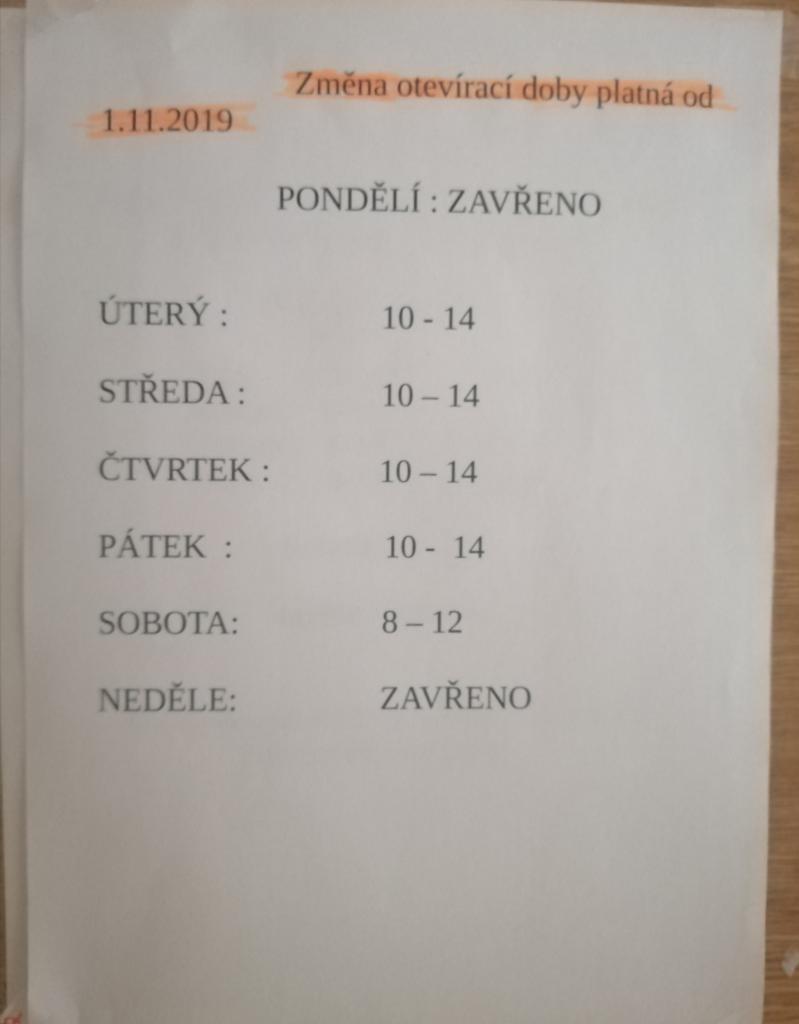 Od 1.11.2019 se mění otevírací doba prodejny Coop v Kalku: