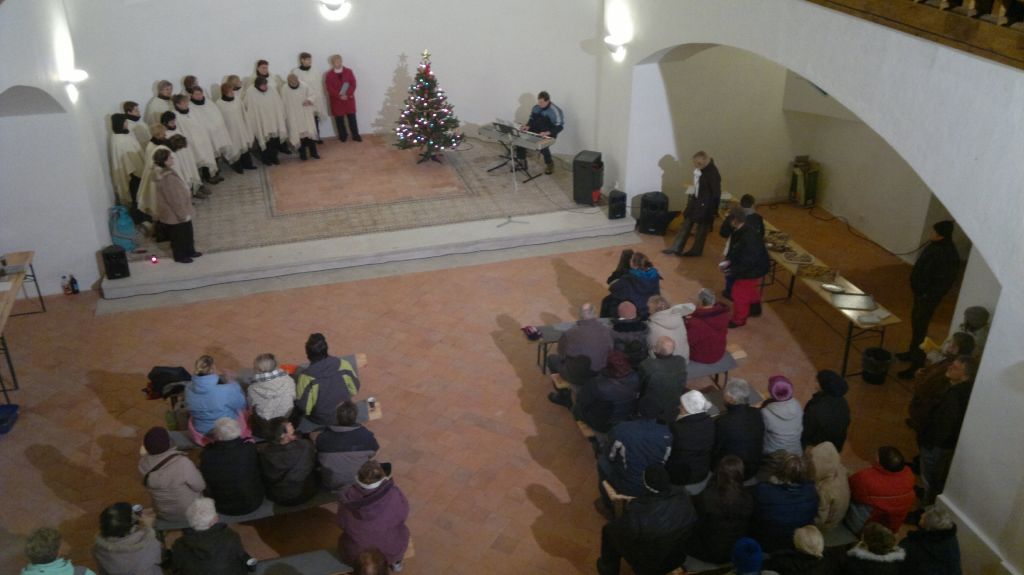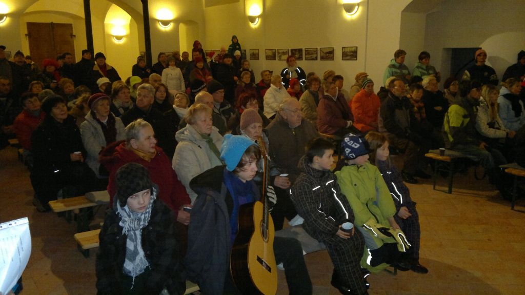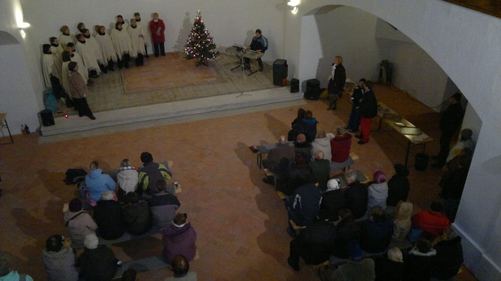 Součástí této předvánoční akce byla vernisáž první výstavy v našem kostele - k vidění zde byly zvětšniny dobových pohlednic Kalku a okolí. ze soukromé sbírky pana France. Za tuto krásnou výstavu děkujeme hlavně panu Francovi s manželkou a paní Ctiborové, kteří se o krásný zážitek z pohledu do historie postarali.